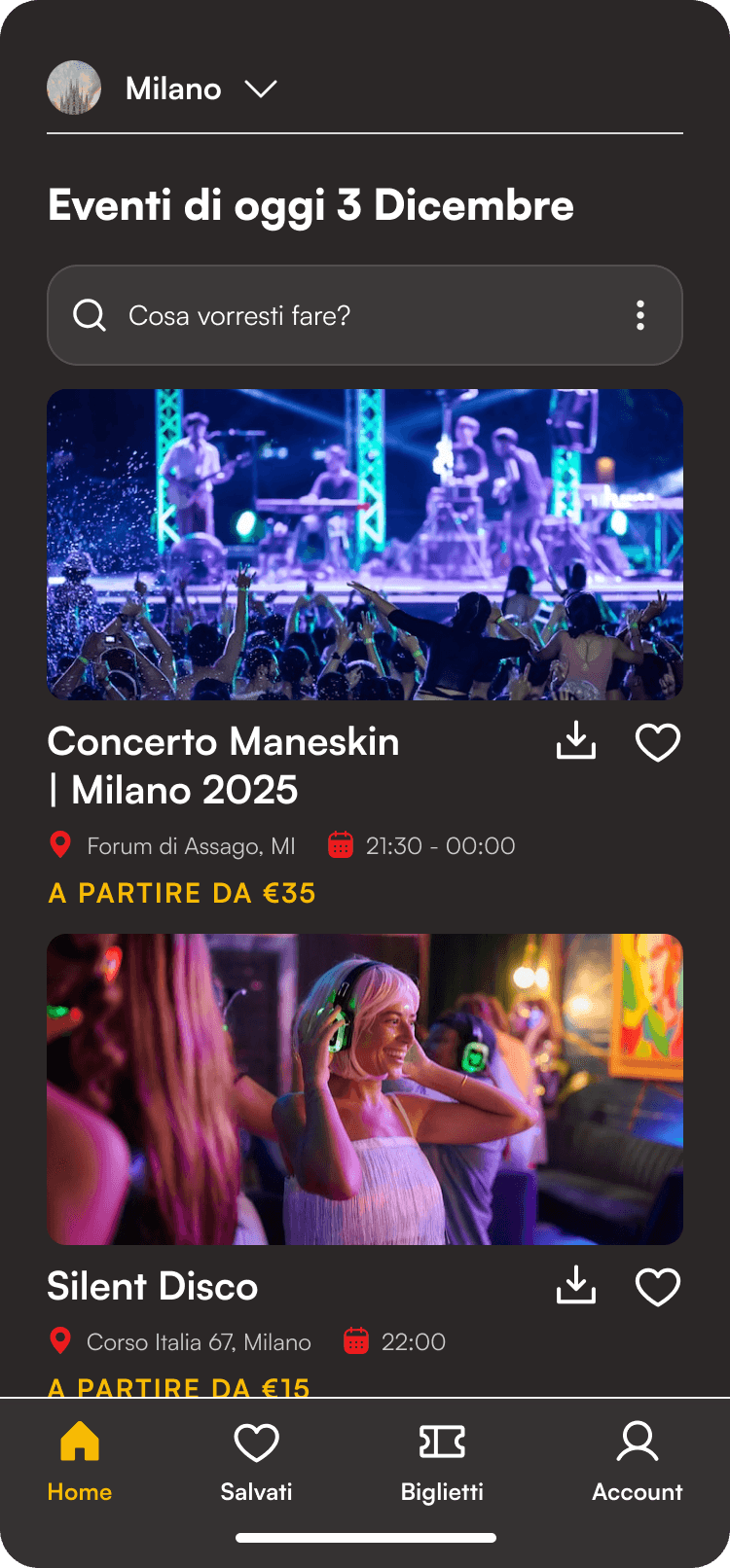 Trova amici, locali, eventi e attività vicino a te. Guarda l’affluenza in tempo reale, acquista ciò che ti serve e vivi una serata sicura, fluida e senza imprevisti.
